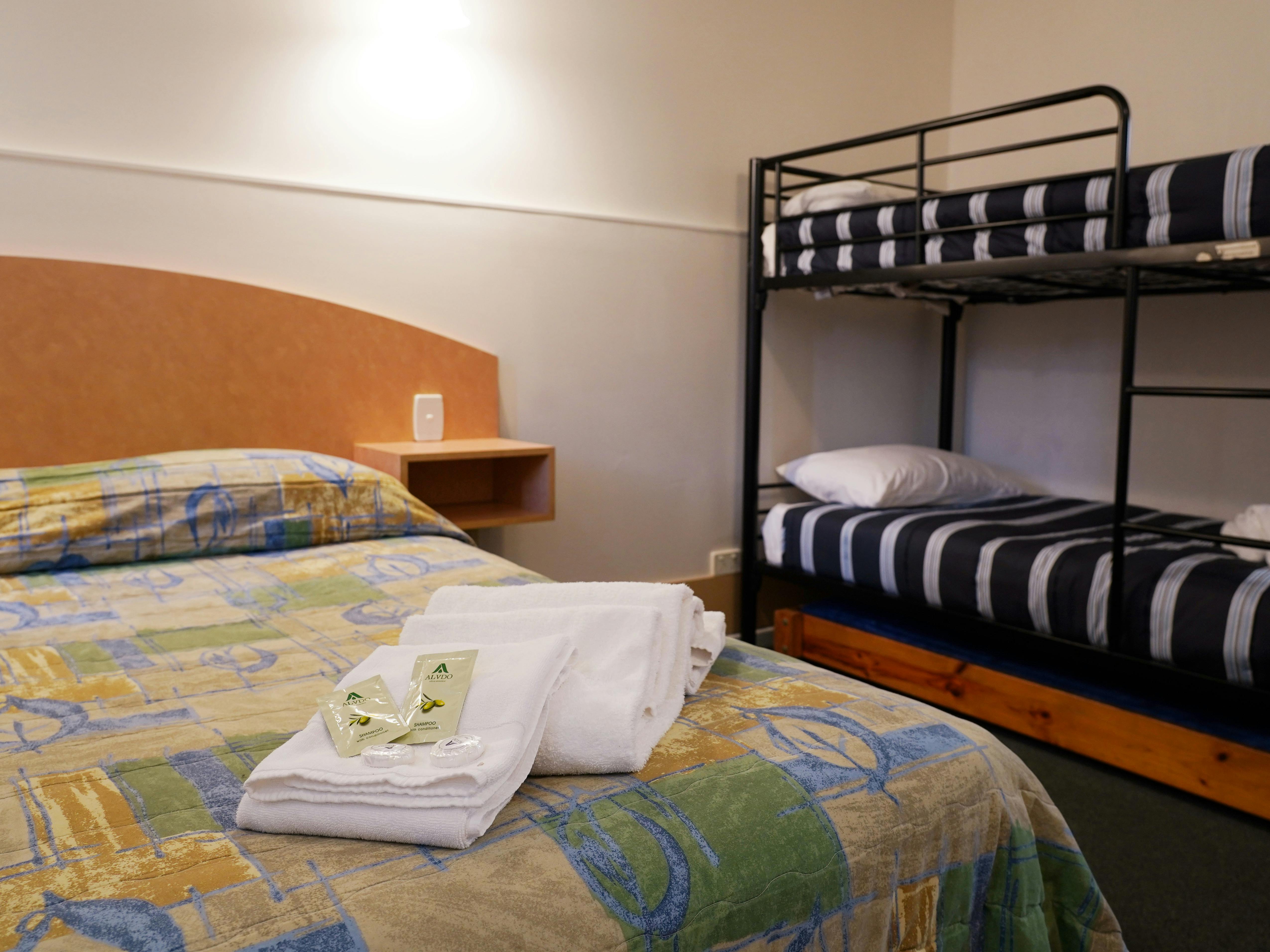 Our Family room consists of 1 queen bed, 1 bunk bed. The rack rate advertised is for 2 adults and 2 children. Room facilities include LED smart TV, microwave, toaster and tea and coffee making.